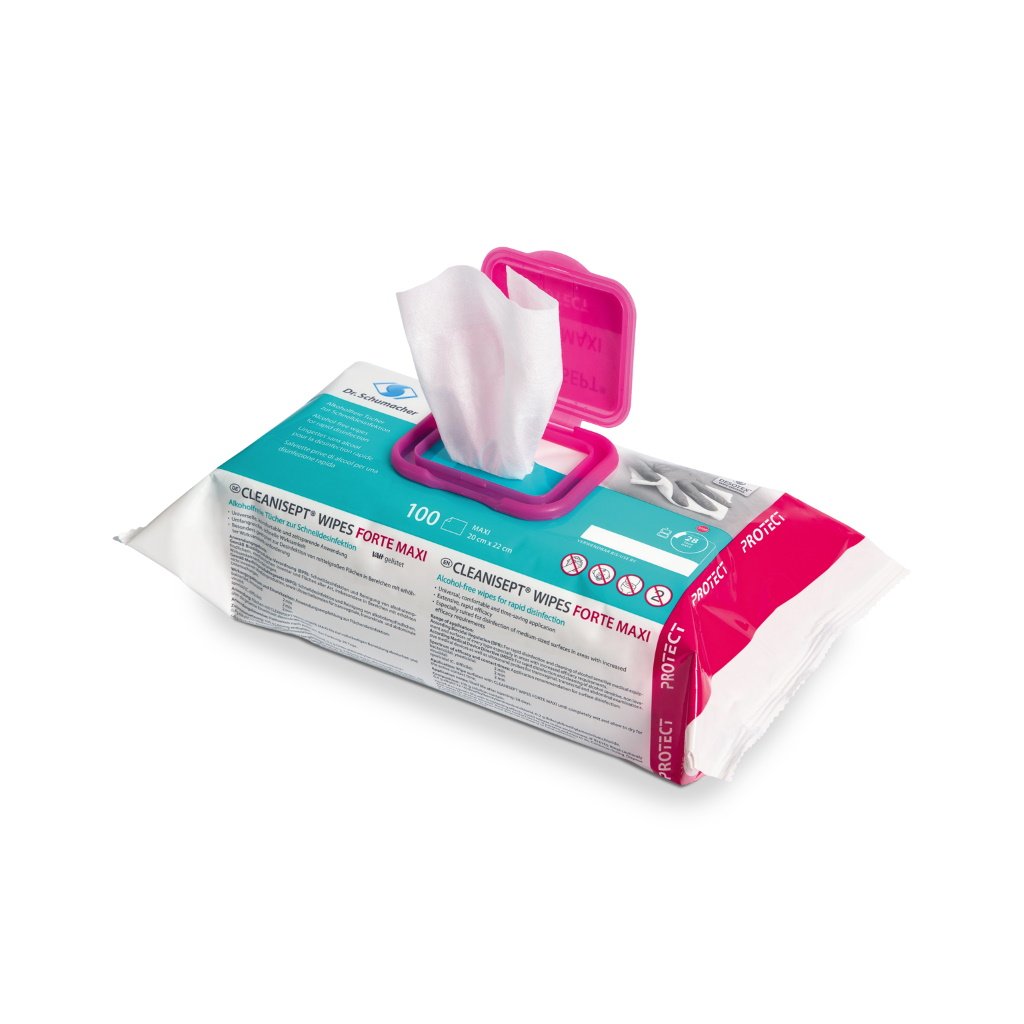CLEANISEPT WIPES FORTE MAXI sú bezalkoholové obrúsky, pripravené ihneď na použitie pre virucidnu dezinfekciu a čistenie všetkých druhov plôch a tiež povrchov zdravotníckych pomôcok, ako aj všetkých typov povrchov v oblastiach so zvýšenými požiadavkami na účinnosť.