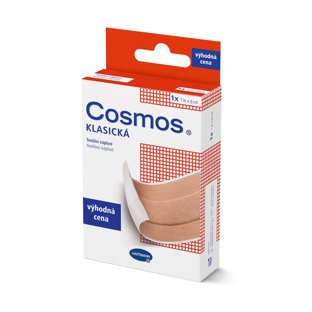 Klasická textilná náplasť Cosmos od výrobcu Hartmann-Rico je ekonomické a univerzálne riešenie pre ošetrenie všetkých typov drobných poranení v domácnosti aj zdravotníctve. Náplasť v praktickom metrážovom návine umožňuje odstrihnutie presne podľa aktuálnej potreby, čo zaisťuje maximálne využitie a úsporu. Vyrobená z odolnej textílie, ktorá spĺňa vysoké nároky na kvalitu a podporuje prirodzené hojenie rany.