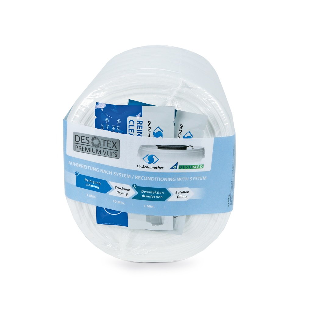 DESCO WIPES je opakovane použiteľný utěrkový systém pre dezinfekciu a čistenie zdravotníckych pomôcok a zdravotníckych zariadení všetkých typov. Skladá sa z opakovane použiteľného vedra pre dávkovanie netkaných utierok a zodpovedajúcich rolí netkaných utierok, ktoré možno stále dopĺňať. Môže byť použitý v kombinácii dezinfekčnými roztokmi pripravenými na okamžité použitie, ale aj užívateľsky riedenými koncentráty, čo je veľmi flexibilné.