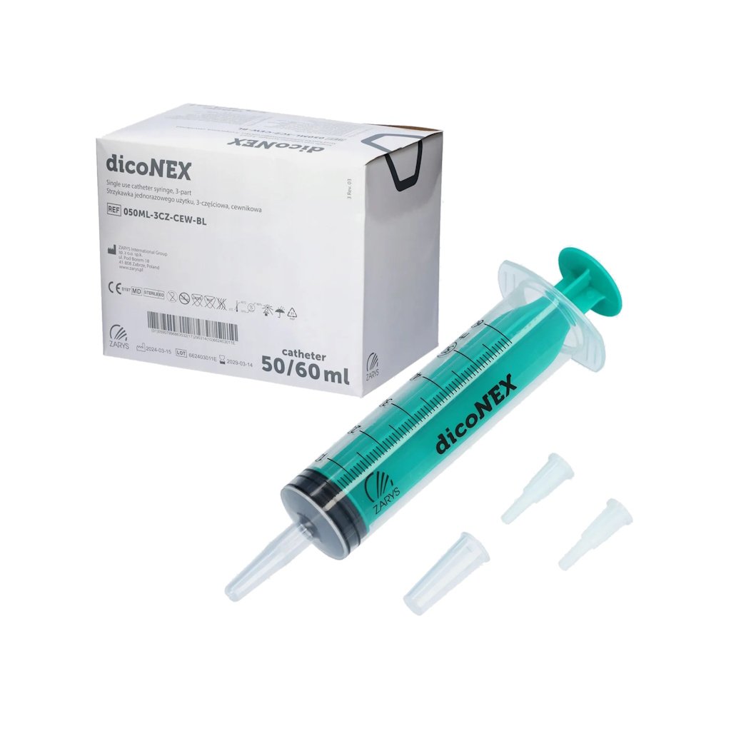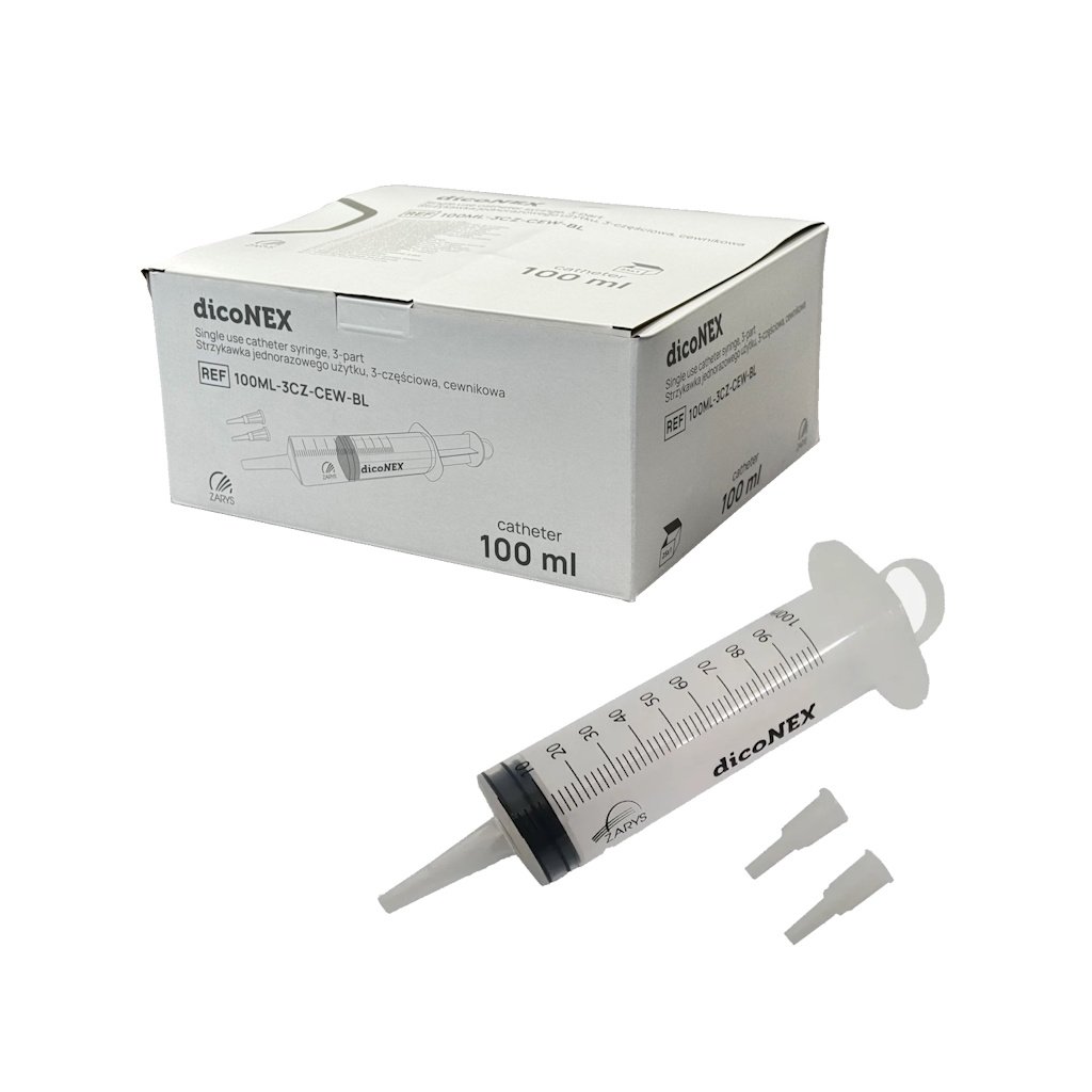 dicoNEX je jednorazová trojdielna striekačka Janette určená na pripojenie katétrov, výplachy a/alebo laváž. Kónus Janette umožňuje priame pripojenie katétrov, čo je ideálne pre enterálnu výživu, výplachy, odsávanie a ďalšie aplikácie.