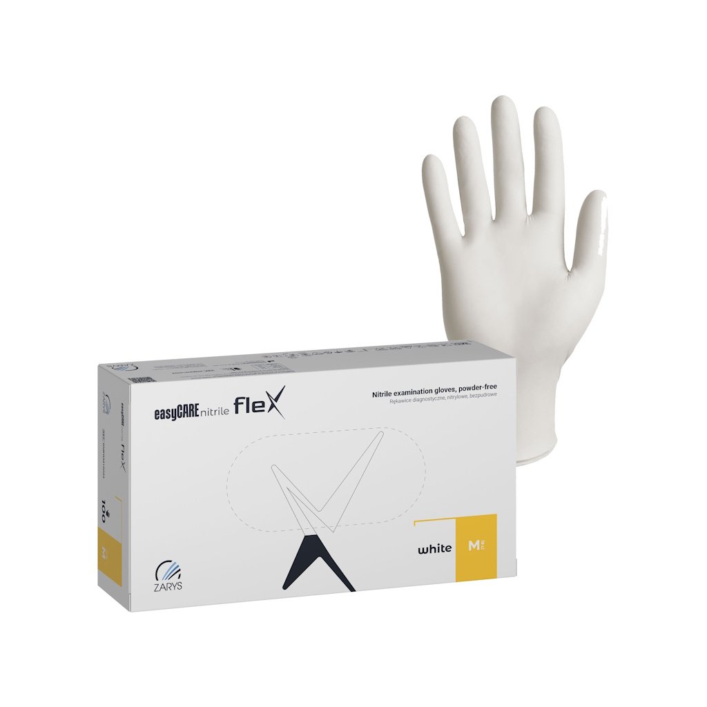Biele nitrilové rukavice easyCARE FLEX sú vhodné pre nemocnice, ordinácie a laboratóriá, kde je požadovaná kombinácia ochrany, komfortu a čistého profesionálneho vzhľadu.