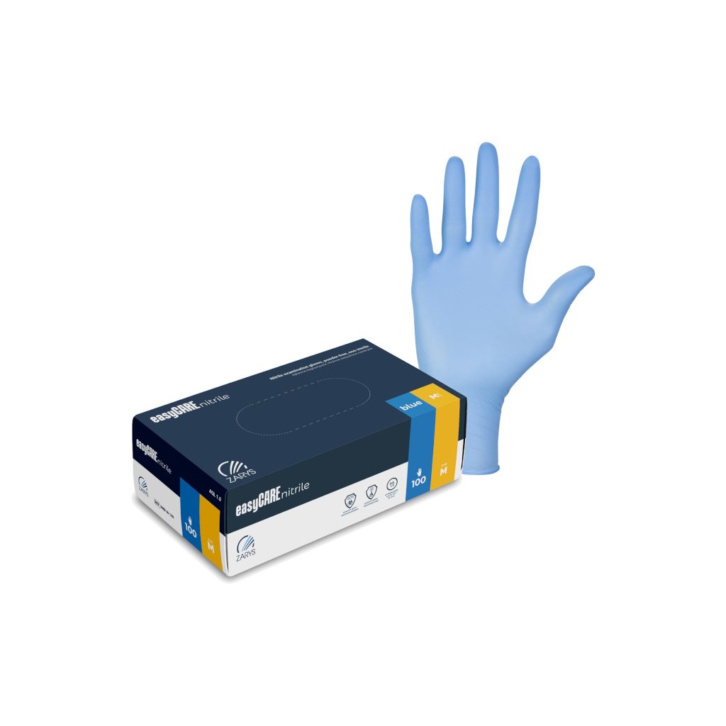 Nepudrované NITRILOVÉ rukavice, textúrované po celej dlani, s dodatočnou textúrou na končekoch prstov, modré, pre jednorazové použitie. Obojstranné (bez rozlíšenia pravej a ľavej ruky) a majú manžetu s rovnomerne rolovaným okrajom. Osobný ochranný prostriedok (OOP) triedy III. Vhodné na styk s potravinami. Zdravotnícky prostriedok (ZP) triedy I. Prostriedok určený na ochranu rúk, na vyšetrovacie a diagnostické úkony, s cieľom zabrániť prenosu mikroorganizmov medzi zdravotníckym personálom a pacientom a minimalizovať tak riziko skríženej kontaminácie.
