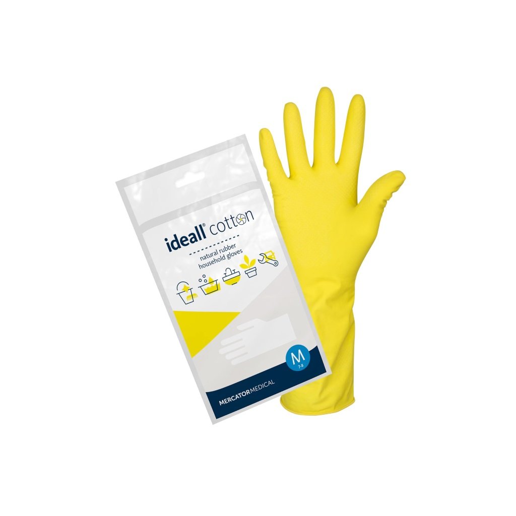 Technické a upratovacie latexové rukavice, žlté s vnútorným semišováním, na jednorazové použitie:• druh rukavíc: priemyslové, ochranné, nesterilné