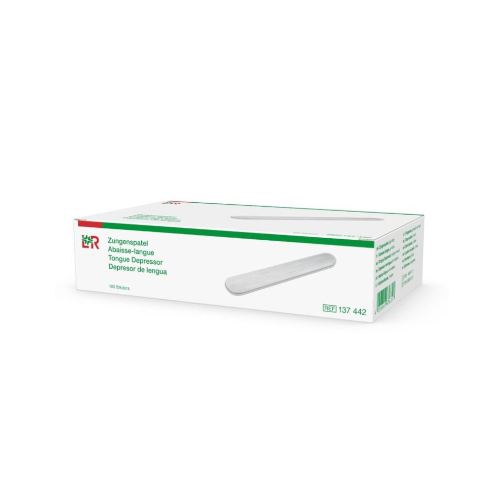 Drevená ústna lopatka pre vyšetrenie ústnej dutiny, eventuálne vyšetrenie hrtana na posúdenie nálezu v oblasti dychovej štrbiny. Zvyčajná veľkosť 150×18 mm. Vďaka hlazenému povrchu majú tieto špachtla nízke riziko poškriabania tkaniva alebo tvorby triesok.
