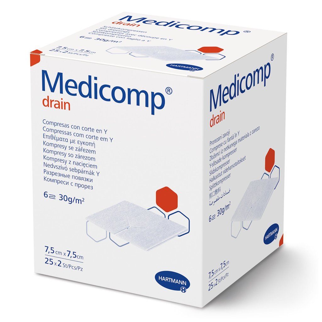 Kompres z netkaného textilu Medicomp má veľmi dobrú savosť, mäkkosť a priedušnosť. Medicomp je určený na všeobecné ošetrenie rán a využíva sa ako tradičné krytie alebo ako tampón pri drobných operačných zákrokoch. Prevedenie Medicomp Drain má nástrih v tvare Y a je určené pre ošetrenie rán s drenážou, napr. pri tracheotómii či extenzii.