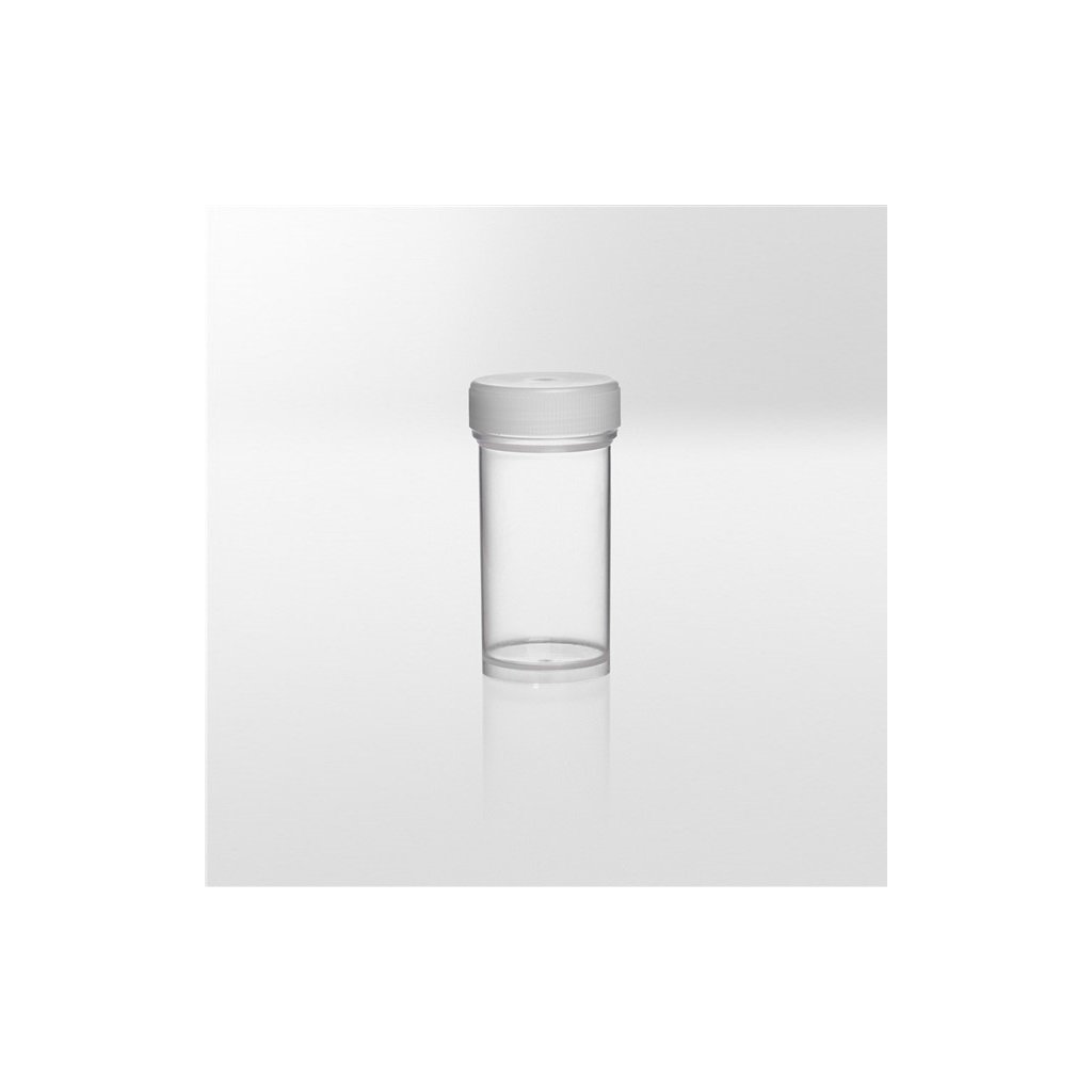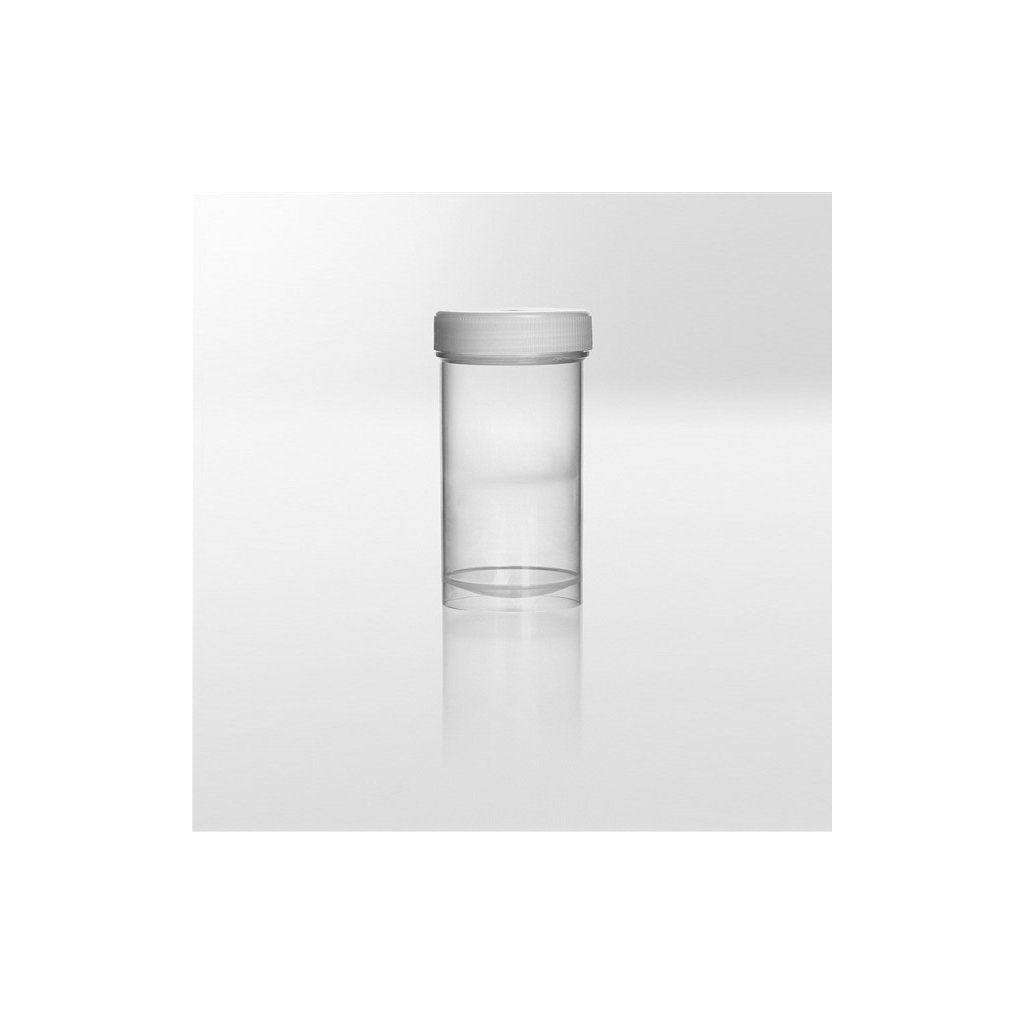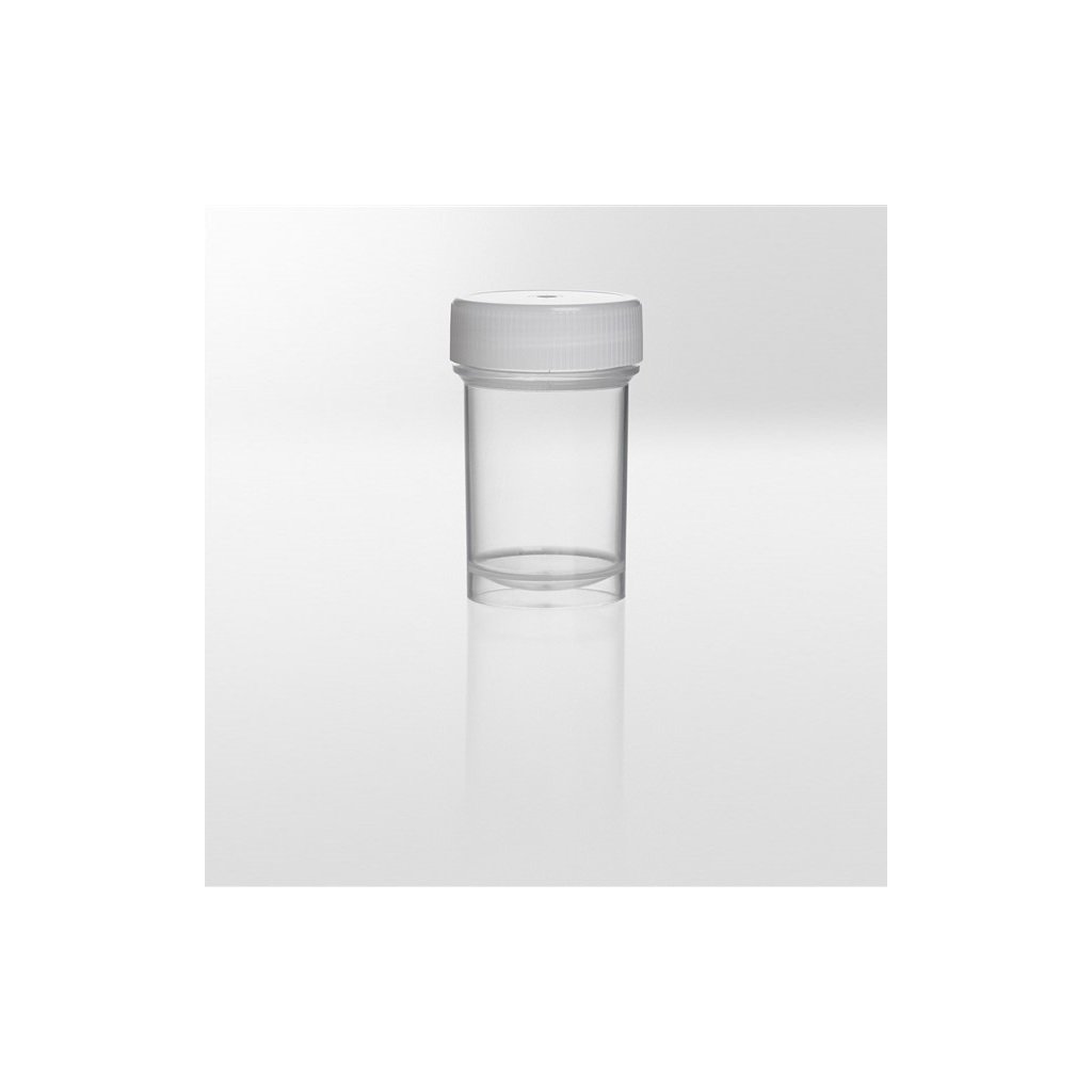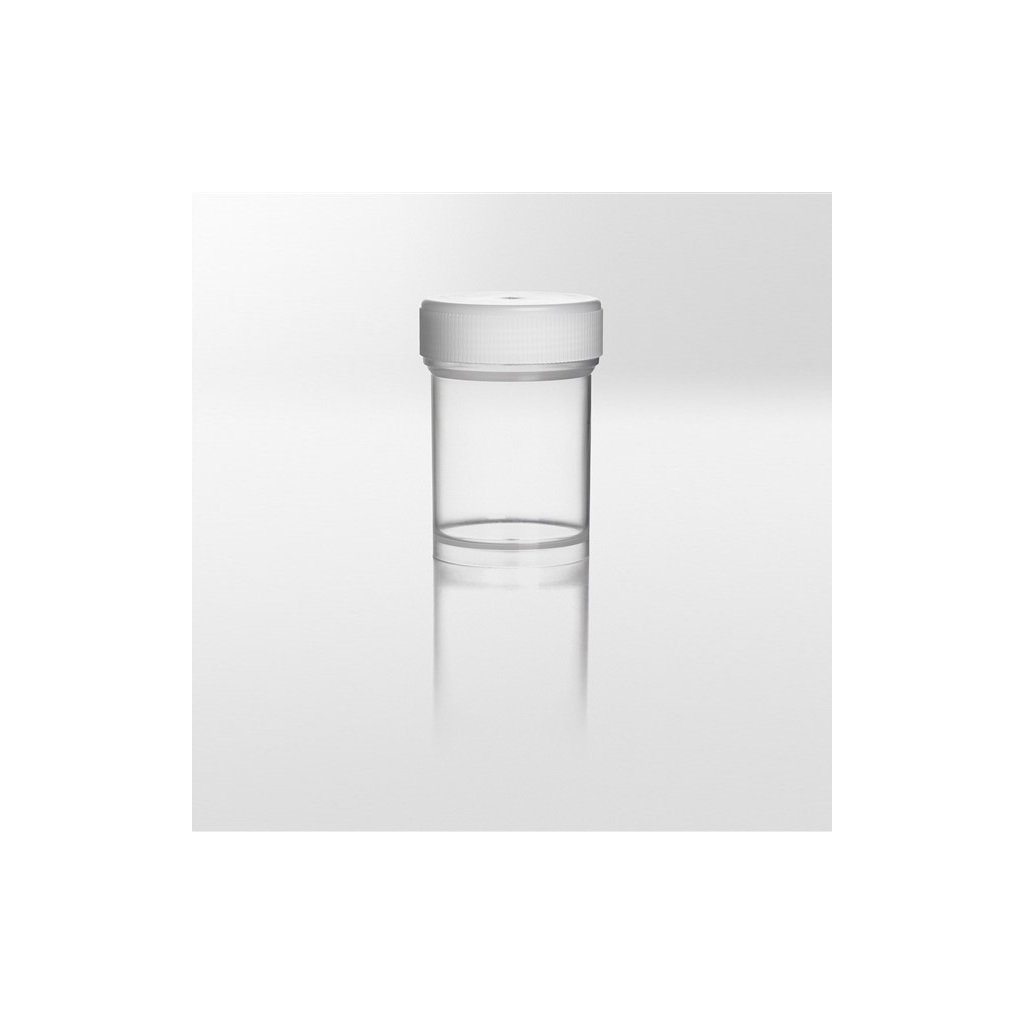 Nádobka na vzorky uzavretá skrutkovacím PE Vice. Vyrobené z transparentného netrieštivého PP (polypropylénu)