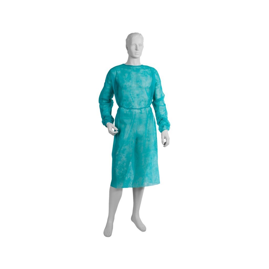 Ochranný plášť z netkanej textílie so zaväzovaním na chrbte a krku. Rukávy majú zakončenie elastickými gumičkami. Plášť chráni užívateľov aj pacienta pred infekciou, nečistotami a navlhnutím. Štandardné šitie a skladanie. Produkt je nesterilný a je určený na jednorazové použitie. Chráňte pred priamym slnečným žiarením. Skladujte na chladnom a suchom mieste pri teplote 5 - 30 ° C.