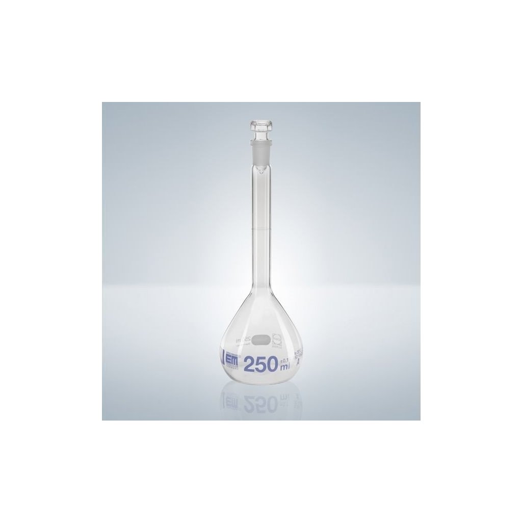 Odmerná banka so skleneným uzáverom a zábrusom, číre sklo, trieda A