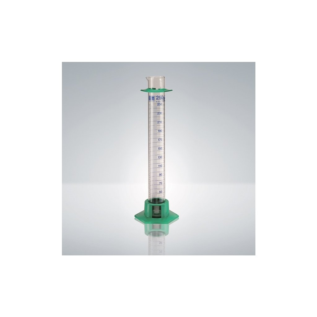 Odmerný valec triedy A, s plastovou základňou, modrá potlač