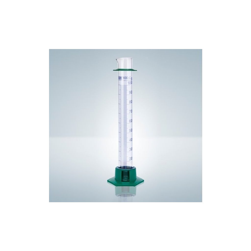 Odmerný valec triedy B, s plastovou základňou, modrá potlač