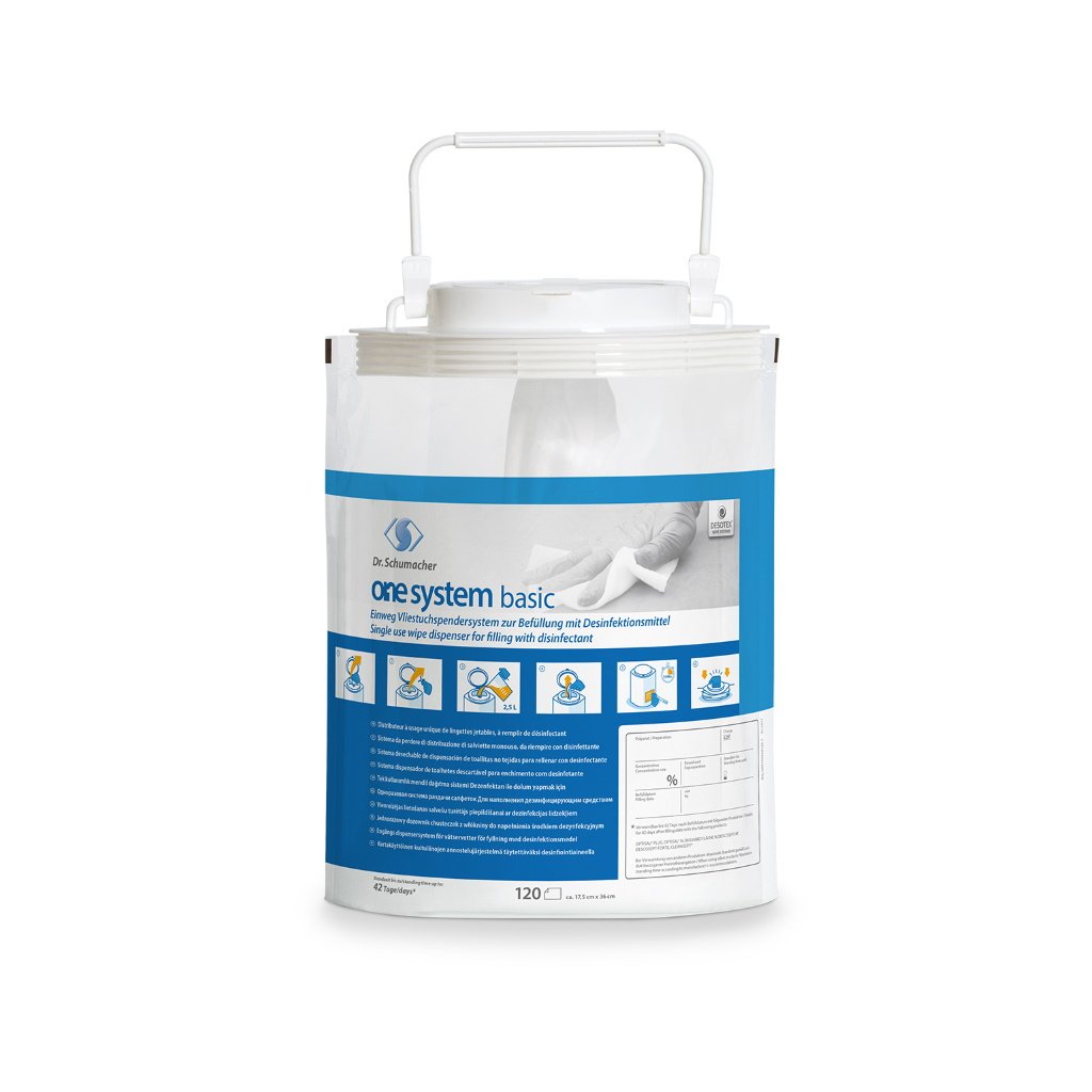 ONE SYSTEM BASIC - jednorazový systém pre netkané dezinfekčné obrúsky určené na dezinfekciu a čistenie povrchov vo všetkých lekárskych prevádzkach, vrátane lekárskych prístrojov. Veľmi praktický a kompaktný ONE SYSTEM BASIC je inovatívny jednorazový systém, ktorý je jednoduchý, bezpečný a efektívny. Je ideálne vhodný pre oblasti od možného rizika až do oblastí so zvláštnym rizikom infekcie.