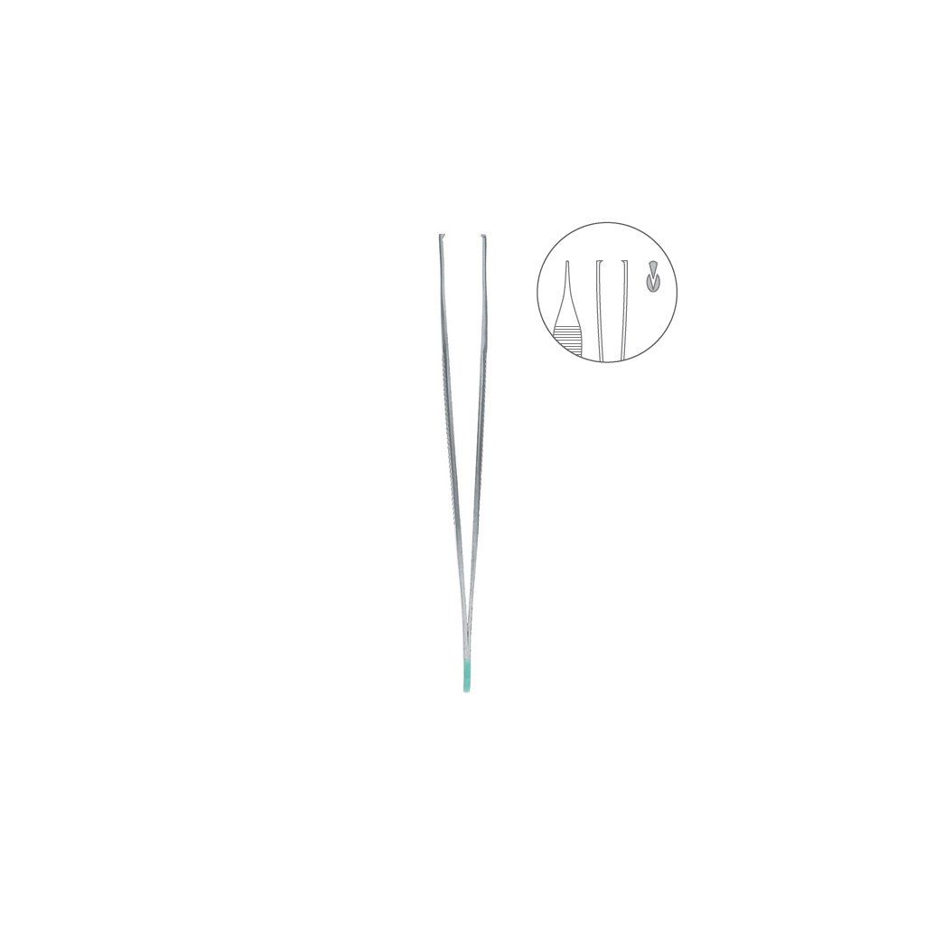 - Jemná, presná, jednorazová pinzeta z nerezovej ocele, zúbkovaná. Vhodná pre úchop tkanív.