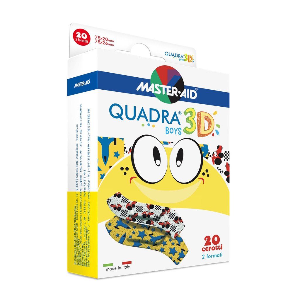 Detská náplasť Master Aid Quadra 3D od výrobcu Pietrasanta Pharma je prvá náplasť svojho druhu, ktorá ponúka jedinečný vizuálny aj hmatový 3D efekt. Vyrobená z priedušnej netkanej textílie s atraktívnymi veselými detskými vzormi, ktoré ošetrenie drobných poranení premenia na zábavný zážitok. Ultra absorpčný nepriľnavý vankúšik spoľahlivo chráni ranu, zatiaľ čo sensitive hypoalergénne lepidlo šetrí aj tú najcitlivejšiu detskú pokožku. Dostupná vo variante pre dievčatá s farebnými vzormi motýlikov a srdiečok a vo variante pre chlapcov s motívmi autíčok a hviezd. Každé balenie obsahuje 20 ks v 2 veľkostiach (78×20 mm a 78×26 mm).