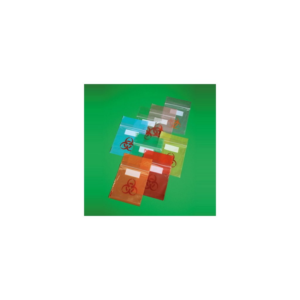 PE sáčky na laboratórne vzorky so zipsovým uzáverom a potlačené symbolom "Biohazard", sú vybavené samostatnou kapsou na sprievodnú dokumentáciu. Vhodné pre všetky pevné vzorky; sáčky sú odolné proti natrhnutiu. Sterilizovateľné etylén oxidom, formalínom, alebo radiáciou.