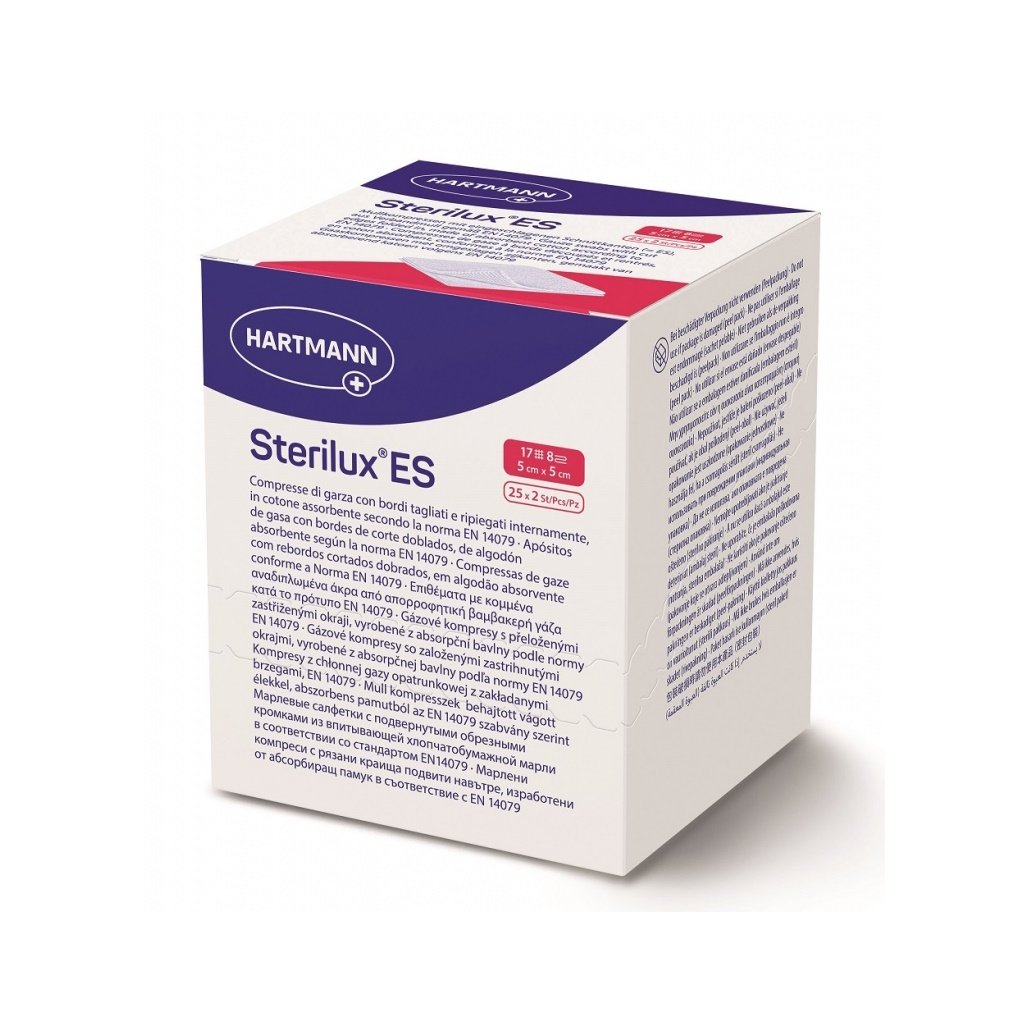 Kompresy Sterilux ES sú krytie z obväzové gázy o 17 vláknach so založenými okrajmi. Ako klasický krycí obväzový materiál majú širokú oblasť použitia a pre ošetrovanie rán sú nevyhnutné. Používajú sa k všestrannej starostlivosti o rany, najmä pri prvom ošetrení znečistených, infikovaných a silno secernujúcich rán; ďalej ako sekundárny krycí materiál a ako tampóny pri malých operatívnych zákrokoch v ambulanciách a na klinikách.