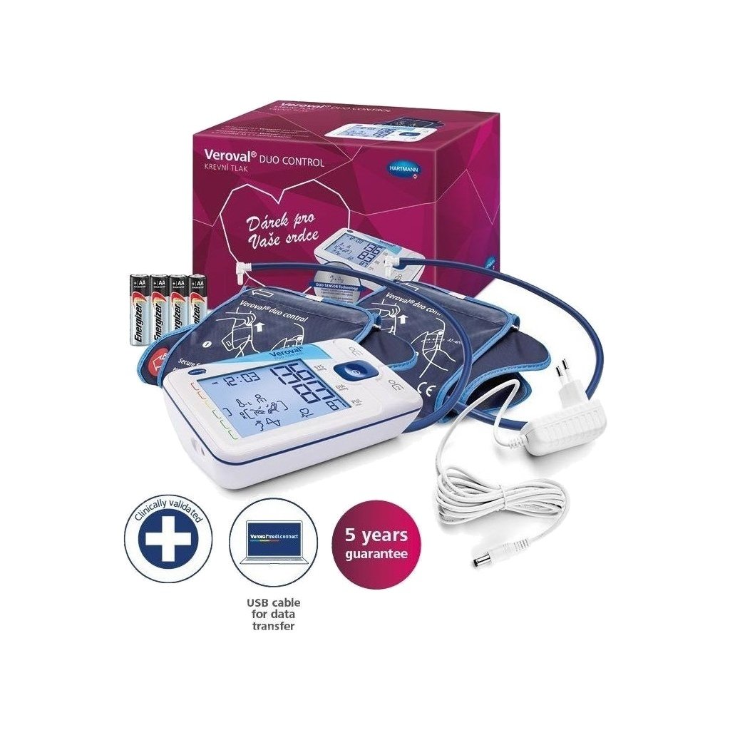Ramenný tlakomer Veroval duo control od spoločnosti Hartmann kombinuje dve profesionálne metódy merania tlaku a vďaka tomu ho môžu používať aj ľudia s poruchami srdcového rytmu. Vedľa oscilometrickej technológie meria tlakomer aj Korotkovovou metódou, ktorá pomocou mikrofónu zaznamenáva srdcové ozvy.