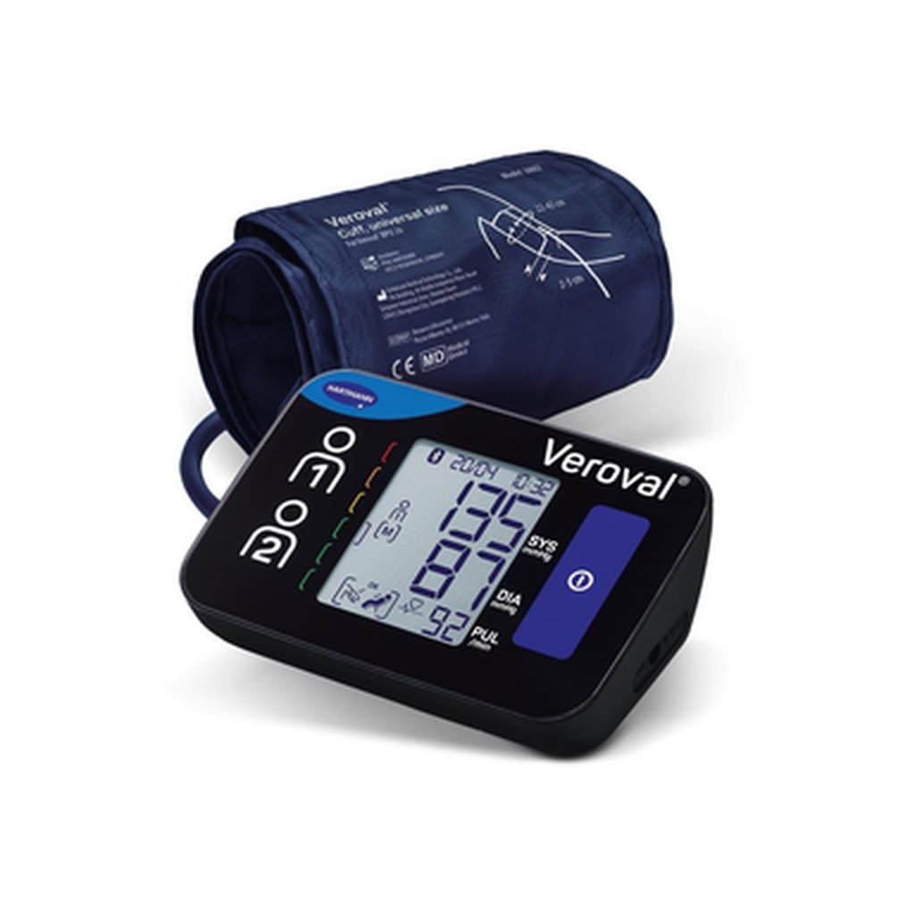 Kompaktný tlakomer v modernom čiernom dizajne pre kvalitné zmeranie krvného tlaku, ktorý vie odhaliť aj srdcové arytmie a fibriláciu predsiení. Domáci tonometer s pokročilými funkciami pre vašu maximálnu istotu. Pohodlne zmeria krvný tlak a odhalia nepravidelný srdcový rytmus. Tlakomer Veroval compact + connect na paži je skvelým pomocníkom pre každého, kto chce mať svoje zdravie pevne v rukách. Jedná sa o prístroj z pokročilého radu tlakomerov HARTMANN, ktorý ponúka spoľahlivé funkcie.